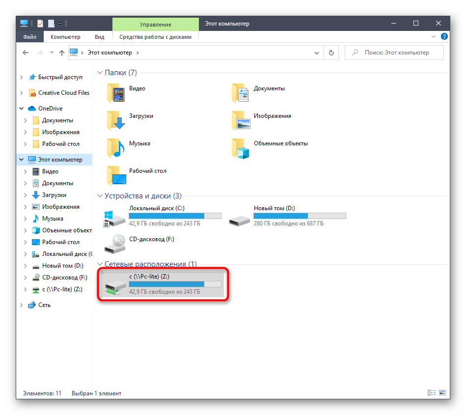 До момента отключения сетевой диск будет располагаться в разделе «Этот компьютер» в списке «Сетевые расположения».
