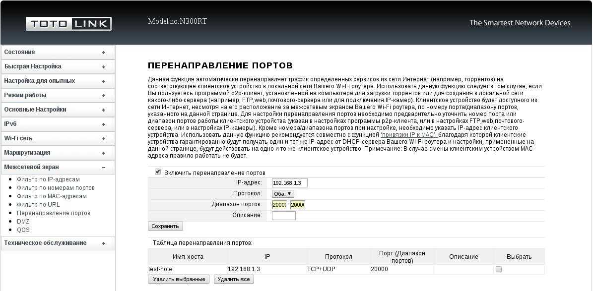 Роутер N300RT перезапустится с новыми правилами открытия портов до указанного сервера. Введите в адресной строке браузера любого из гаджетов или ПК, подключённых к вашей локальной сети, запрос в формате «IP:порт», например, 192.168.8.101:1201, если, скажем, вы разрешили диапазоны портов 1200–1240 и 1250–1300. Если вы запросите, к примеру, 192.168.8.101:1501, роутер Totolink N300RT сообщит вам о блокировке этого запроса по указанному порту, т. к. порт не открыт.