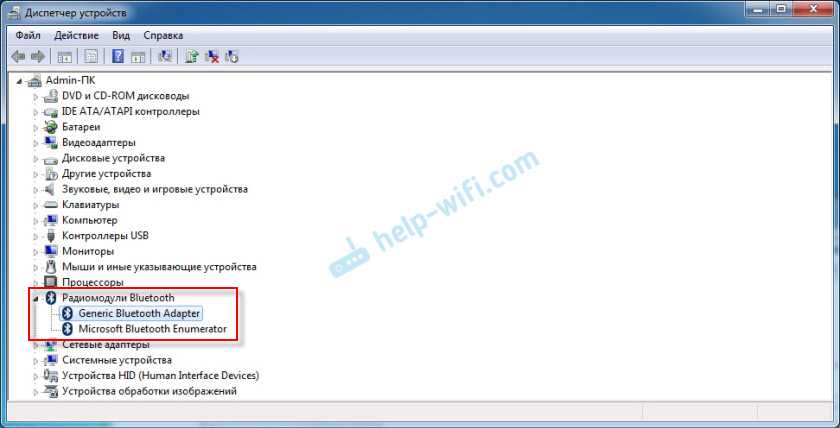 Способ 3: проверяем наличие Блютуз адаптера в диспетчере устройств Windows