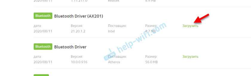 Если на сайте несколько драйверов на Bluetooth, то они для разных поставщиков (производителей) самого модуля. В описании драйвера это указано (Intel, Qualcomm Atheros, Broadcom). Если не знаете какого производителя у вас беспроводной модуль, то можно попробовать скачать и установить оба драйвера. Конечно, это делать нежелательно, но ничего страшного случиться не должно. Как правило, неподходящий драйвер установлен не будет. В процессе установки появится ошибка «устройство не найдено или отключено», или что-то тип этого.