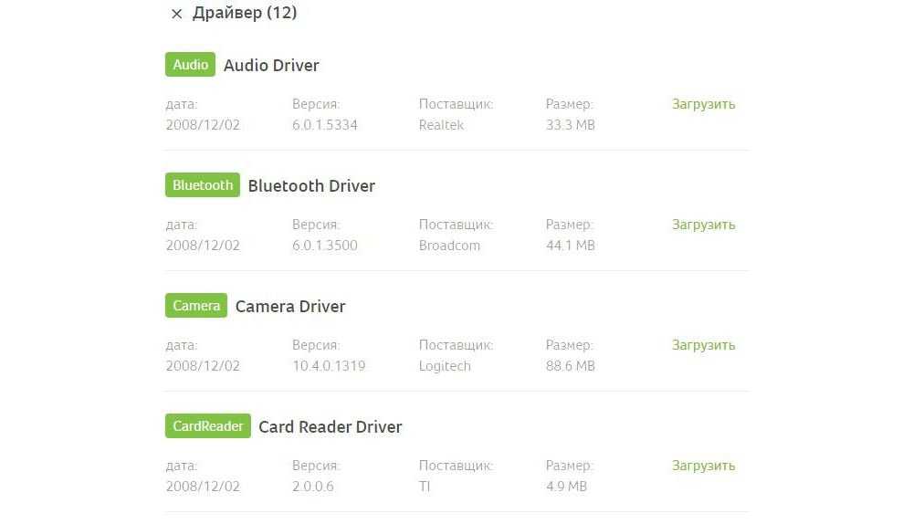 Откроется страница нашей модели. Выбираем там Windows, которая установлена на ноутбуке и открываем категорию «Драйверы».
