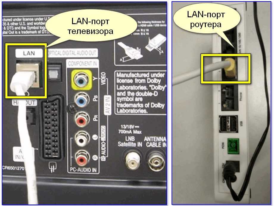 - Соединяем телевизор с роутером с помощью обычного Ethernet кабеля.