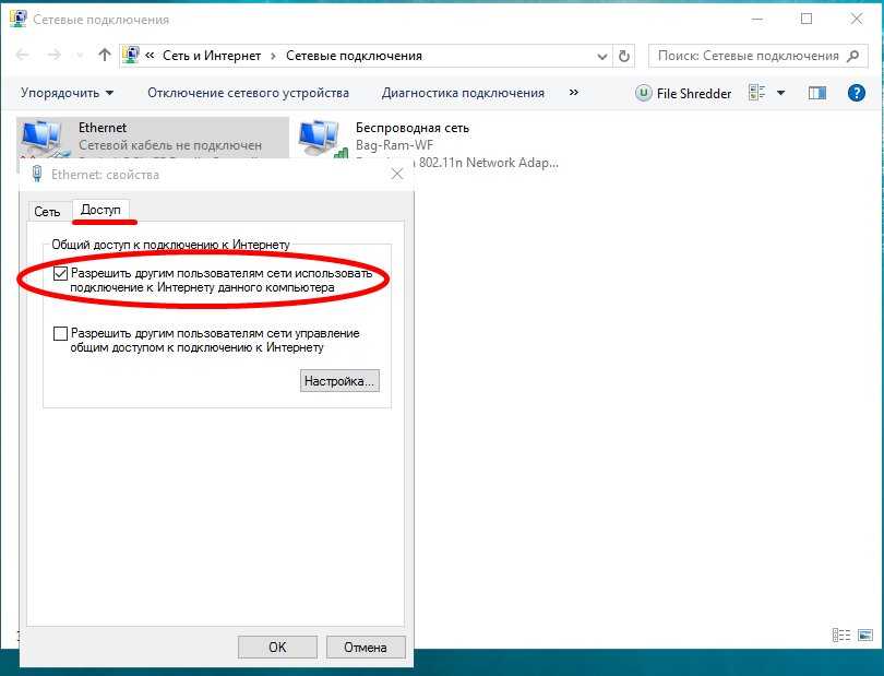 Раздача средств WiFi при подключении «Компьютер – Компьютер»