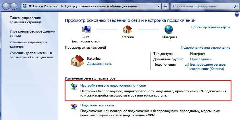 Выскочит новое окно, теперь в нем жмем на строку «Настройка нового подключения…», «Настройка беспроводной сети…».