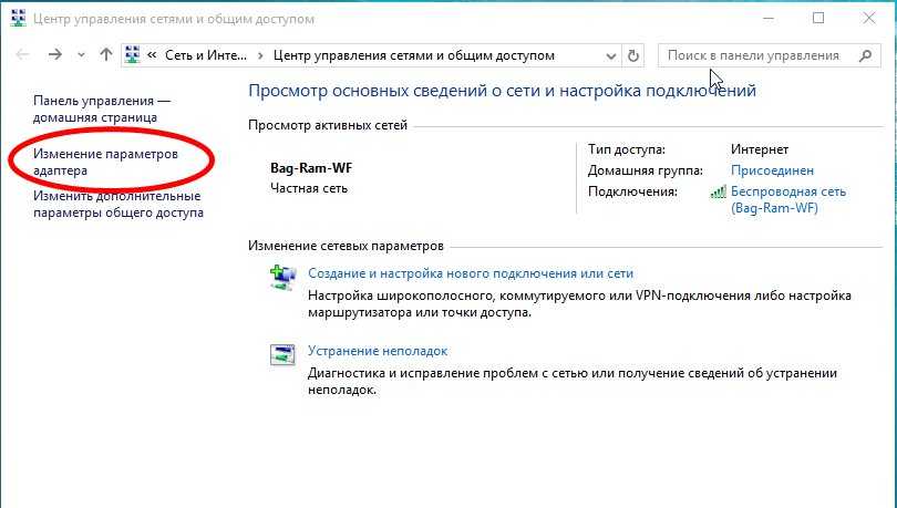 - в разделе конфигурирования и управления сетями воспользоваться консолью Изменения параметров адаптера,