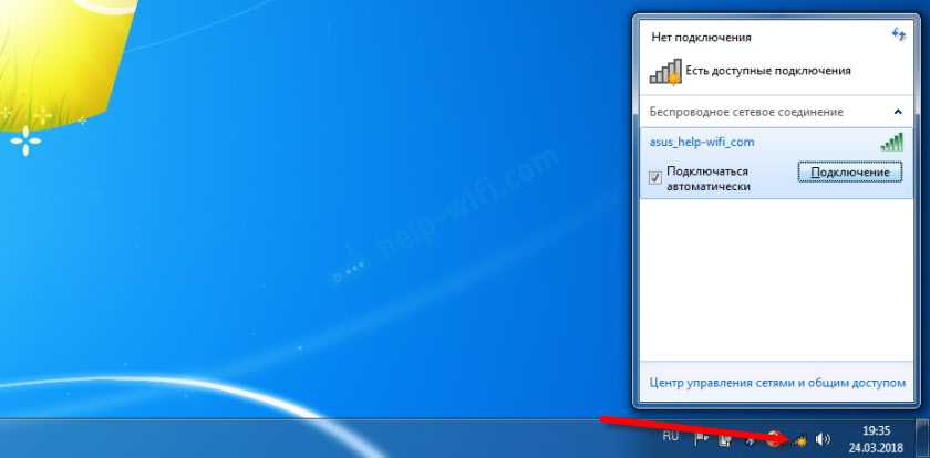 Статус соединения, который выглядит как уровень сети со звездочкой (как на картинке выше) говорит о том, что ноутбук видит доступные сети и готов к ним подключится. Нажимаем на эту иконку, затем выбираем Wi-Fi сеть к которой нам нужно подключиться и нажимаем кнопку Подключение. В Windows 10 процесс подключения к Wi-Fi немого отличается. Если необходимо, подробная инструкция здесь.