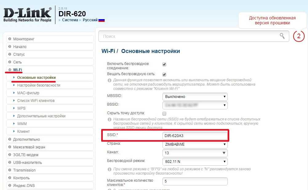 В настройках данного передатчика все вкладки прописаны на английском языке, поэтому могут возникнуть затруднения при замене названия соединения. Поменять имя можно так:
