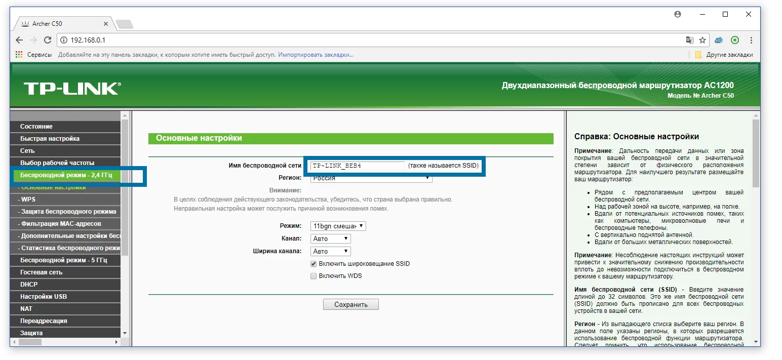 - «SSID» нужно заполнить названием сети: можно использовать английские символы, а также цифры. Если вы хотите сменить имя, напишите другое название и сохраните его.