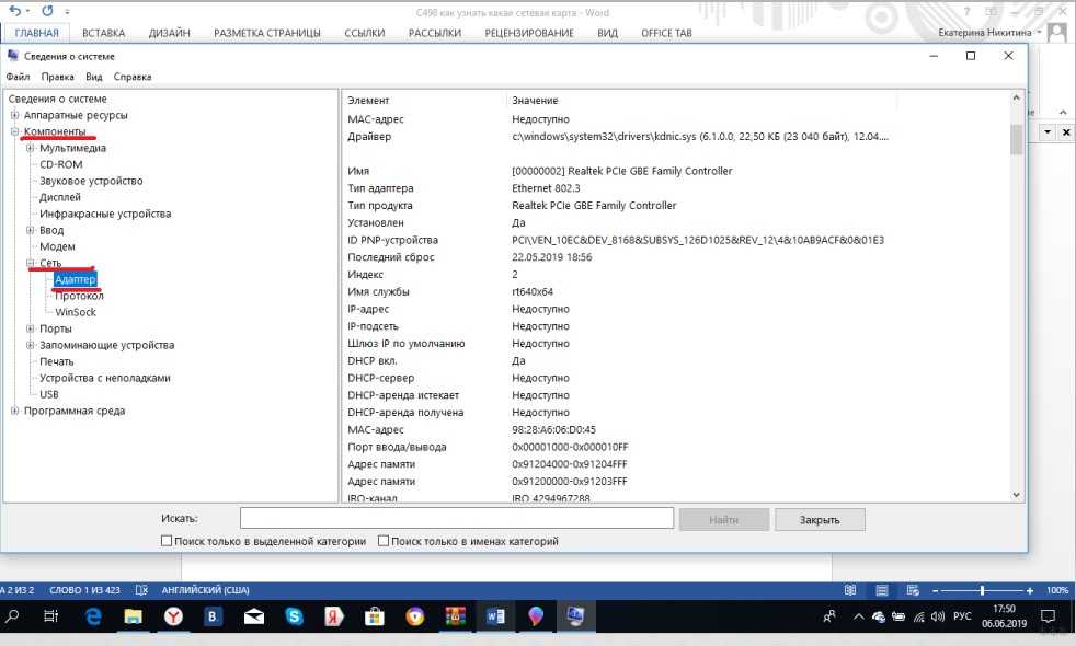 Как узнать модель сетевой карты?