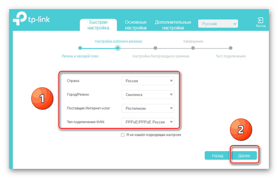 На следующей вкладке указываем свою страну, город, интернет-провайдера и тип подключения. И идём дальше.
