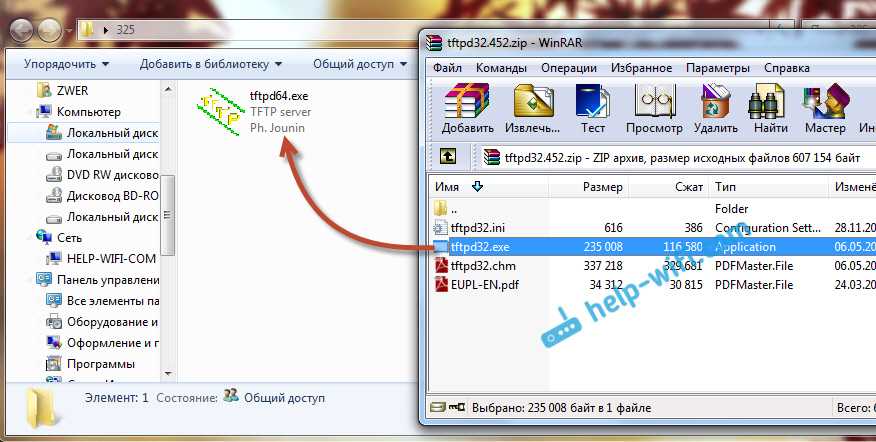 1. Первым делом, нам нужно скачать специальную программу Tftpd. Скачать можно по этой ссылке – tftpd32.452 (размер – 467 кб) . Сохраните архив с программой на компьютере. Создайте папку с любым именем. Я создал ее на рабочем столе, с именем “325”. Извлеките в эту папку саму программу, файл tftpd32.exe.