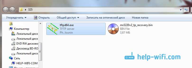 Затем, файл прошивки поместите в папку с программой tftpd32.exe. У вас должно получится примерно так: