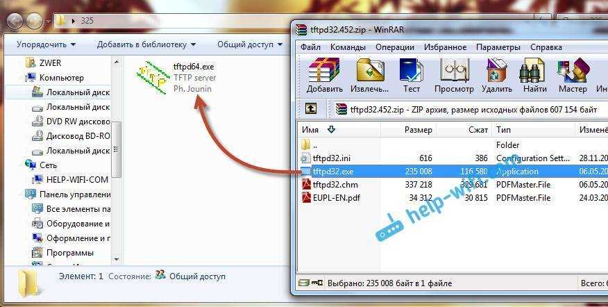3. Распакуйте архив с программой. Файл прошивки разместите в одной папке с программой tftp32.