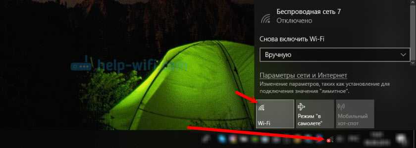 1 Пробуем просто включить Wi-Fi. В Windows 10 нужно нажать на значок в трее и нажать на кнопку ‘Wi-Fi’. Так же можно проверить настройки беспроводной сети в параметрах.
