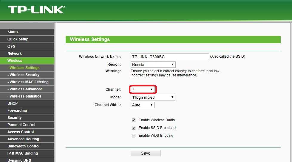 ШАГ 5 — Зайдя в настройки я обнаружил, что роутер работает на 13 канале. Вручную меняем на любой с 1 по 11. Я выбрал 7.