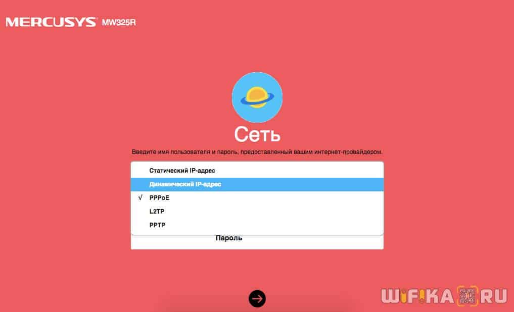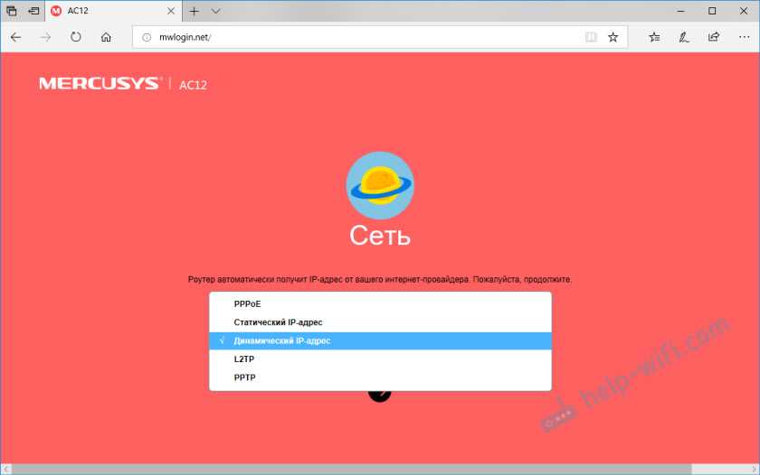 Далее начнет работу мастер быстрой настройки, который по шагам поможет подключить Mercusys к интернету и установить беспроводную сеть.