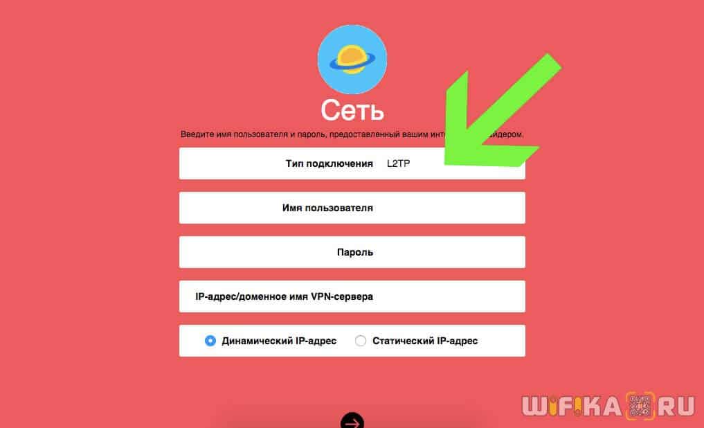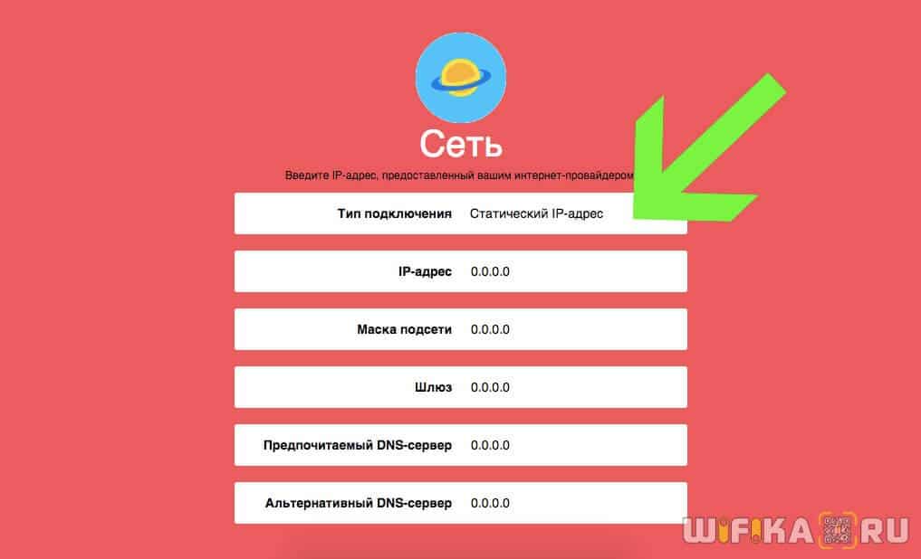 На следующей странице нужно указать параметры для подключения к интернету (интернет-провайдеру)