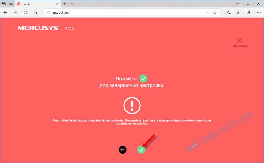 Подключаемся заново, нажимаем на кнопку «Подключено» и «Завершить». После чего попадаем в веб-интерфейс роутера.Настройка Mercusys AC10 завершена!