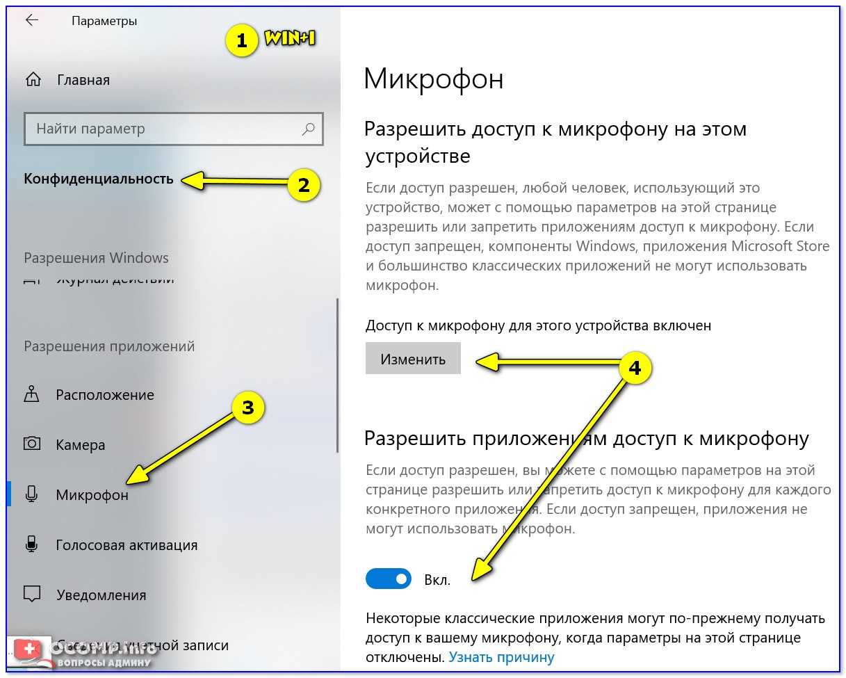 Нужно-то всего лишь запретить доступ к микрофону для всех приложений на этом устройстве (кнопка «Изменить», стрелка-4) . После этого ни в одном из запускаемых вами приложений — микрофон не будет доступен!
