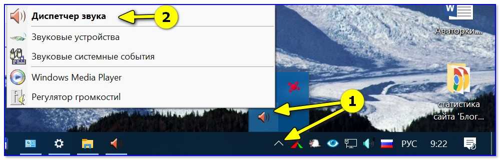 Если аудио-драйвер у вас установлен — то найти ссылку на его панель управления можно в трее (рядом с часами).