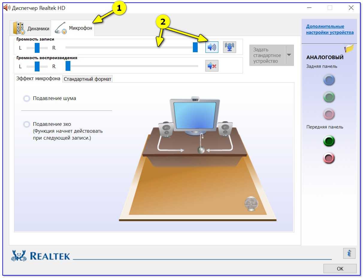 Точечно настроить работу микрофона можно с помощью панели управления аудио-драйвера (чаще всего, это какой-нибудь Realtek HD).