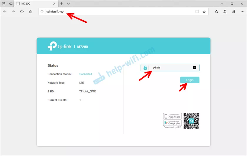 Just select a Wi-Fi network from the list available on your mobile device or computer, enter the password and connect. After connecting from any device, through any browser, you can go to the TP-Link M7200 settings. To do this, go to http://tplinkmifi.net Factory password to enter the settings — admin