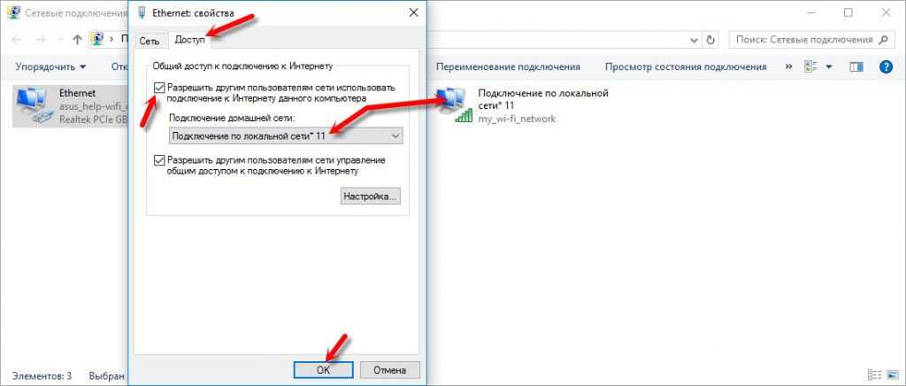 Аналогично можно раздавать интернет по wifi с компьютера, который подключается к всемирной паутине не напрямую кабелем, а через один из LAN портов маршрутизатора. В таком случае нам надо будет открыть общий доступ именно к подключению по локальной сети, вместо высокоскоростного соединения или PPOE, как это я делал только что.