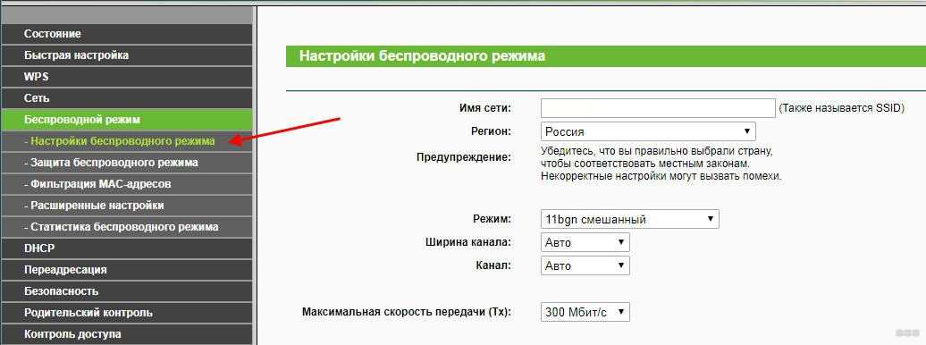 - В меню выбираете закладку «Беспроводной режим» → «Настройки…».
