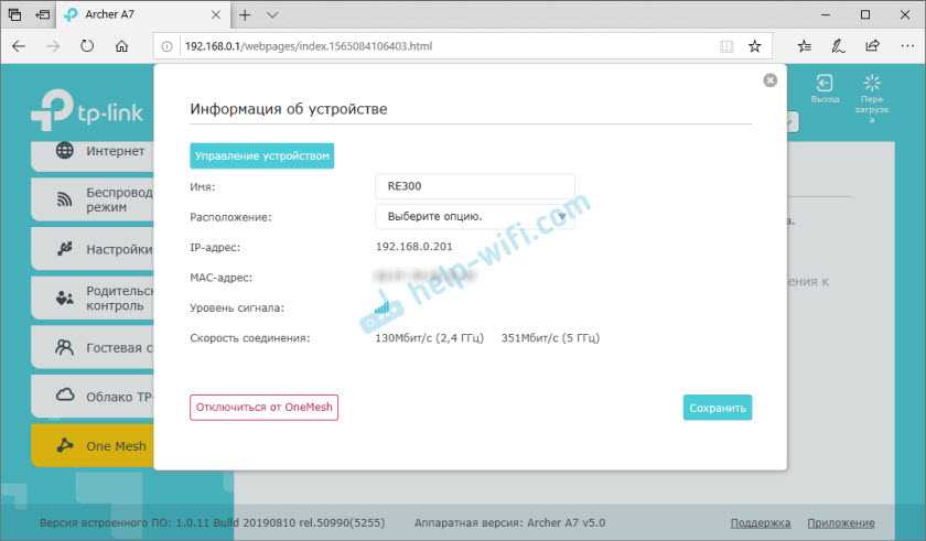 Можно зайти в веб-интерфейс роутера, в раздел «One Mesh», и проверить, появился ли там наш усилитель.