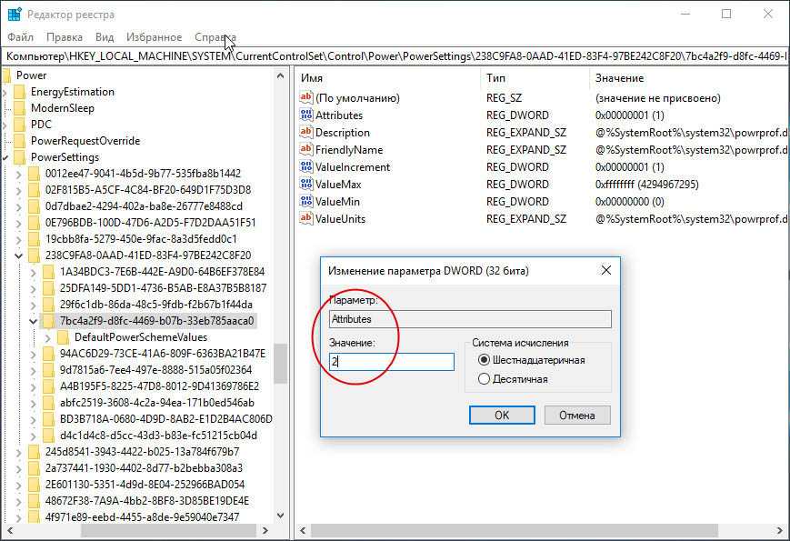 HKLM\SYSTEM\CurrentControlSet\Control\Power\PowerSettings\238C9FA8-0AAD-41ED-83F4-97BE242C8F20\7bc4a2f9-d8fc-4469-b07b-33eb785aaca0