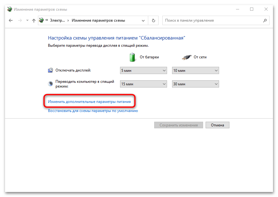 Пройдите по пути: « », раздел «Электропитание» и выберите дополнительных параметры плана питания.