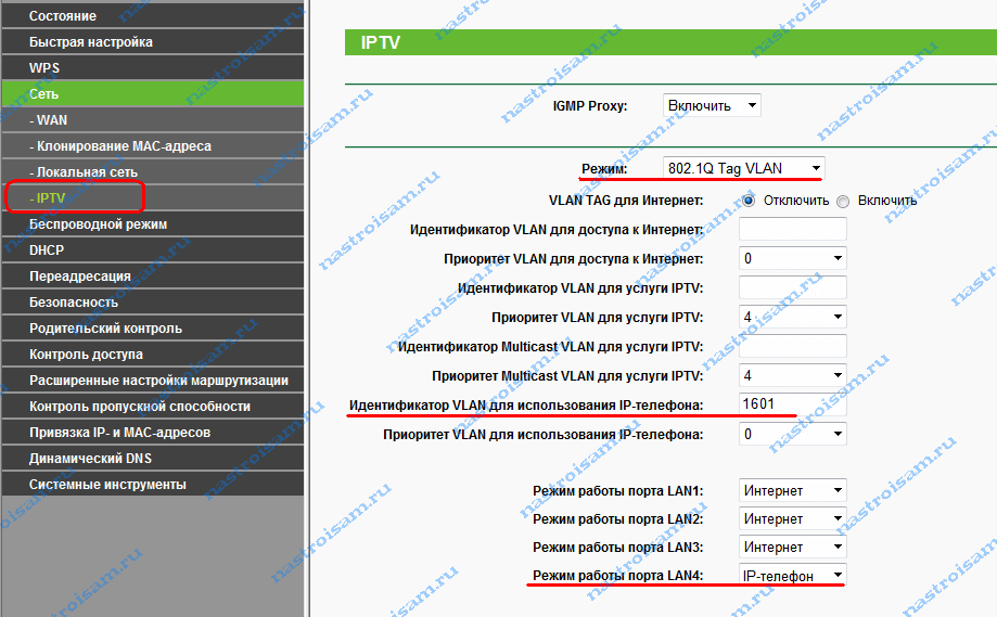 Вариант 2. IPTV на роутере TP-Link с указанием VLAN ID.
