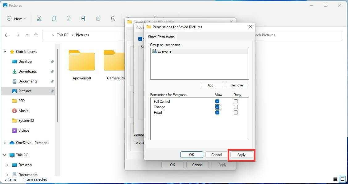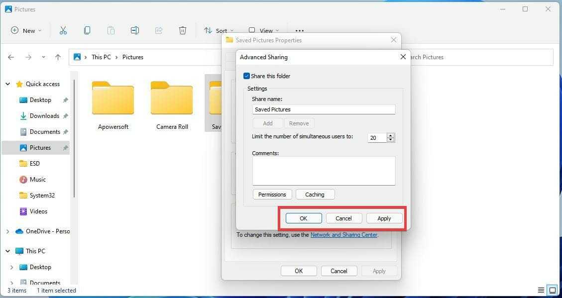 В Advanced Sharing снова нажмите кнопку Применить затем O K , чтобы применить настройки.