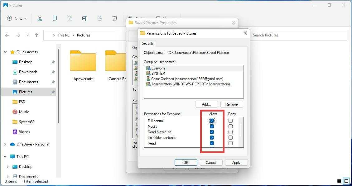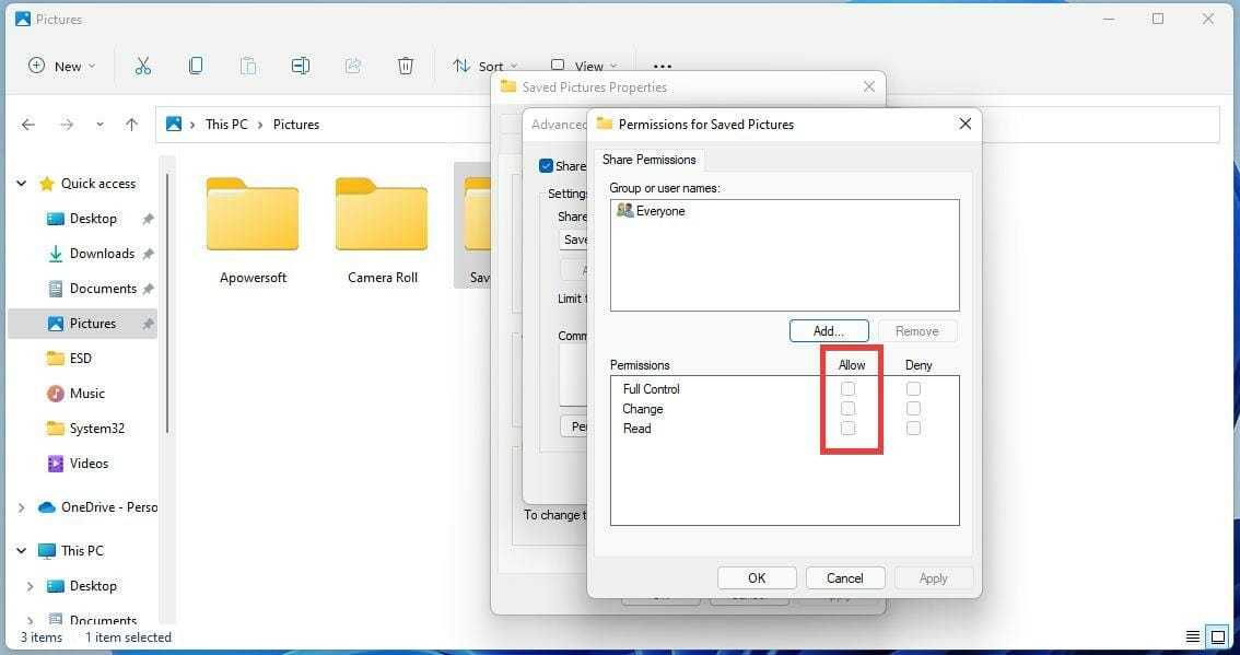 Включите разрешения для всех , установив все флажки в разделе «Разрешить».