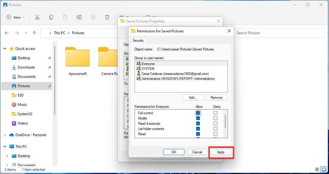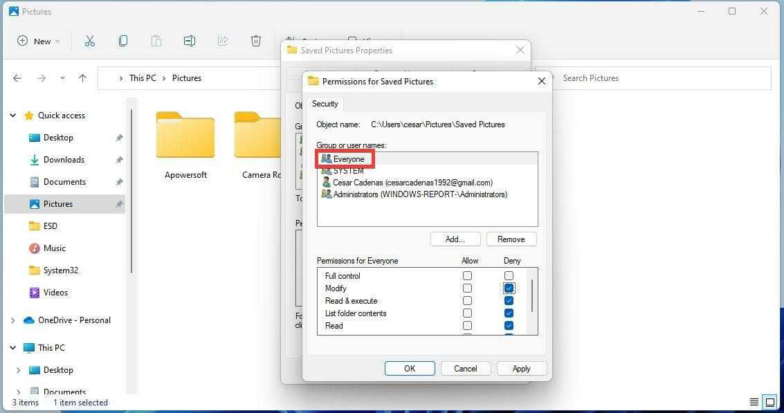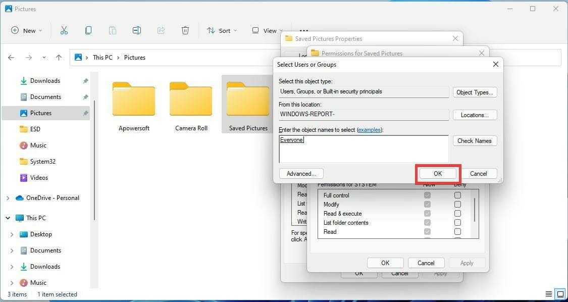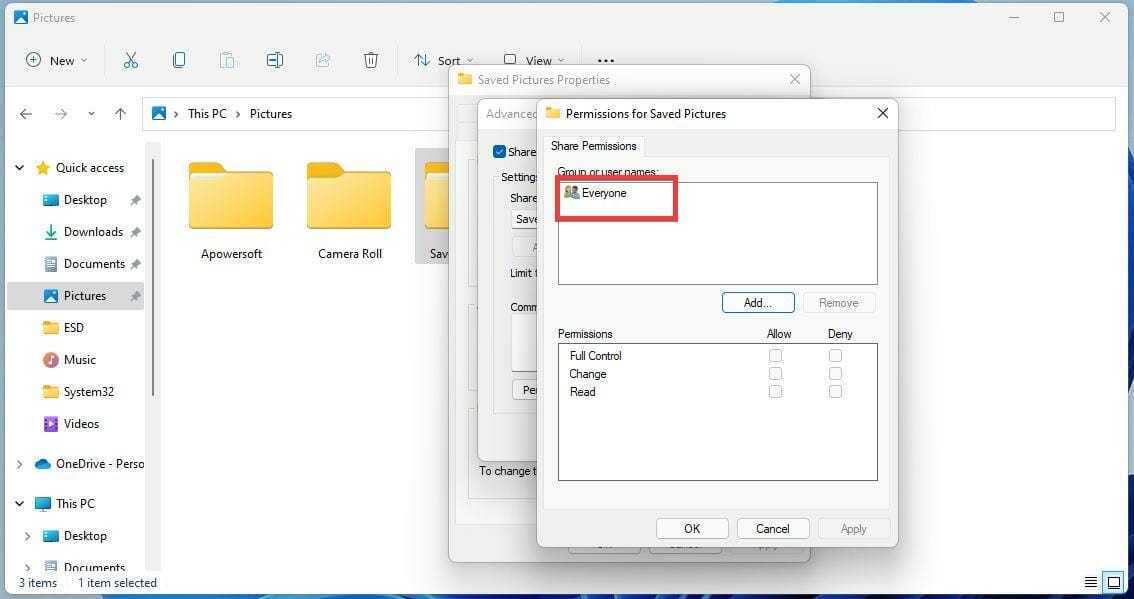 Вы увидите « Все» в списке в окне «Безопасность» в разделе «Группа или имена пользователей».