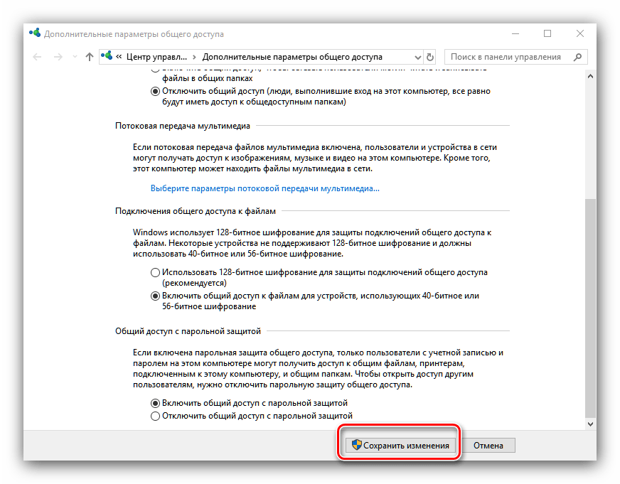 - Закройте дополнительные настройки общего доступа, затем перезагрузите компьютер.