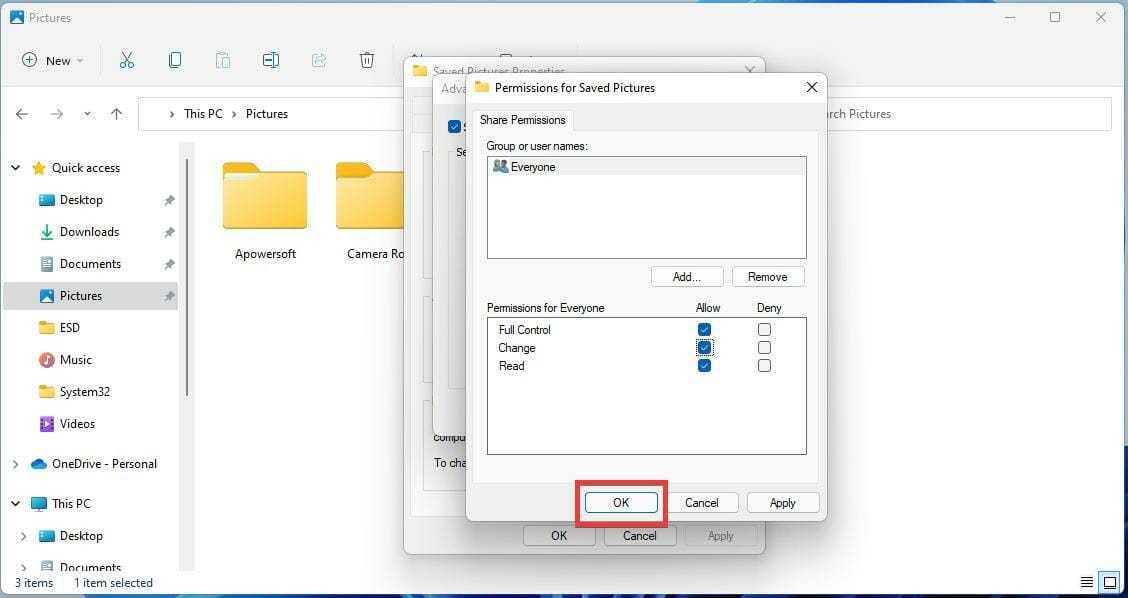 Щелкните ОК, чтобы закрыть окно «Разрешения для сохраненных изображений».