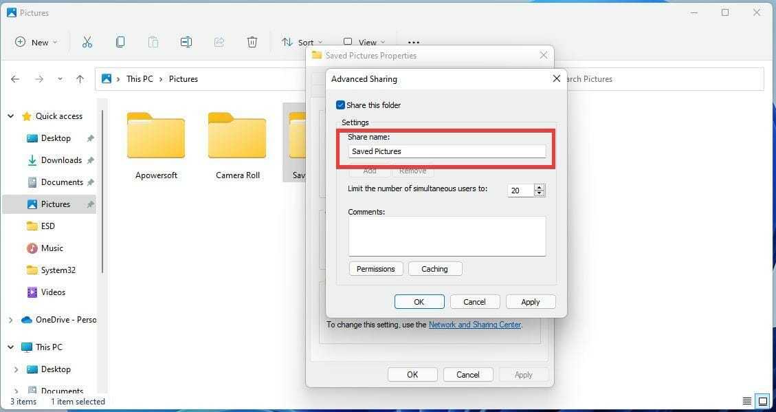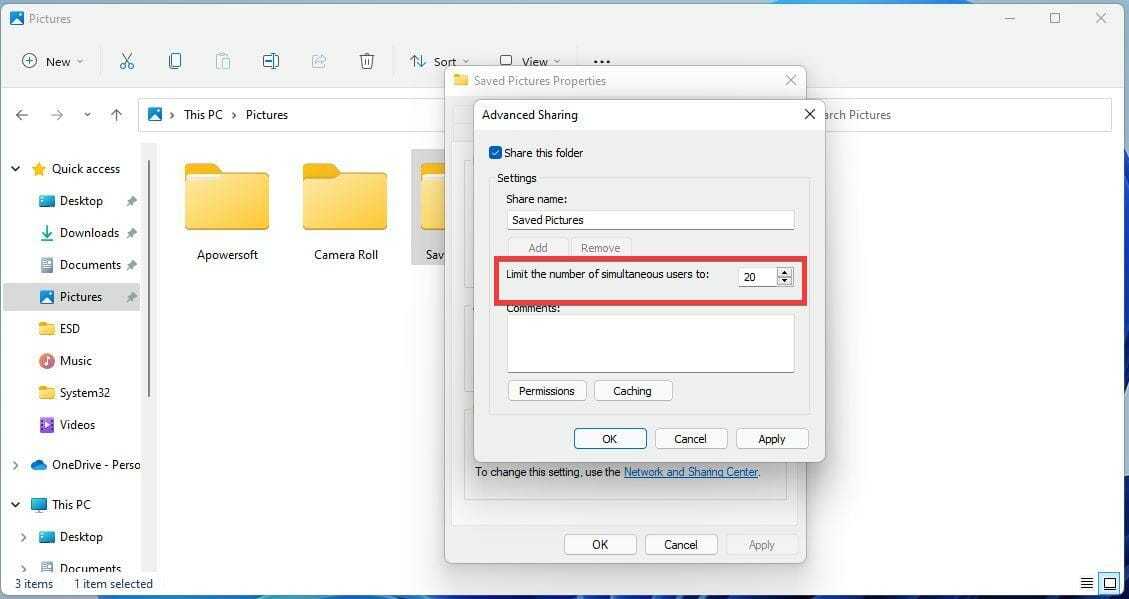 Вы можете ограничить количество пользователей, которые могут иметь доступ к общей папке, изменив номер справа.