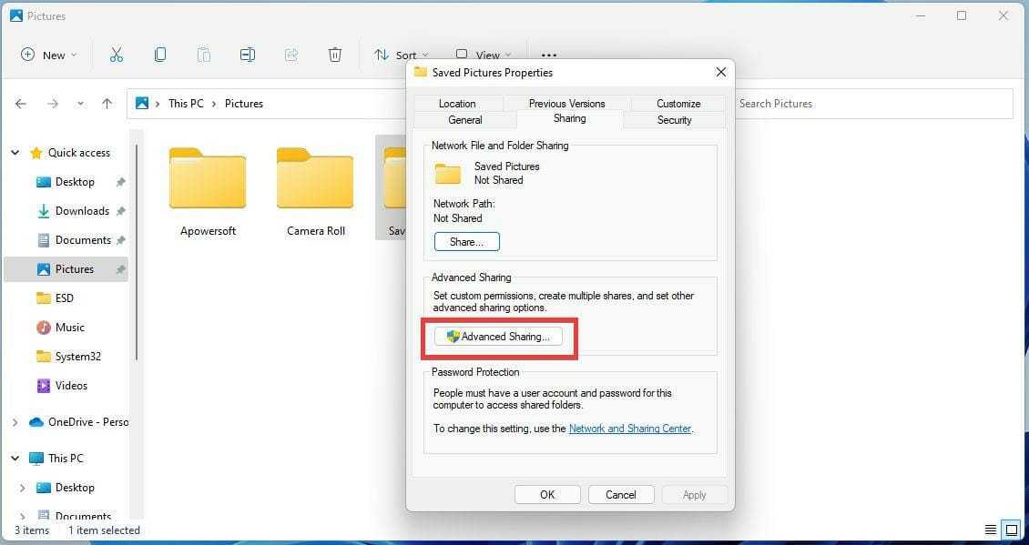 Нажмите кнопку Advanced Sharing в центре окна. Это откроет окно Advanced Sharing.