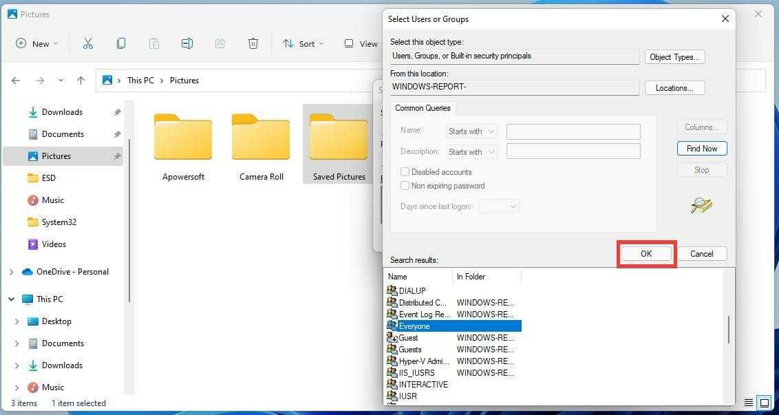 Вы вернетесь в окно выбора пользователей или групп. Выберите ОК.
