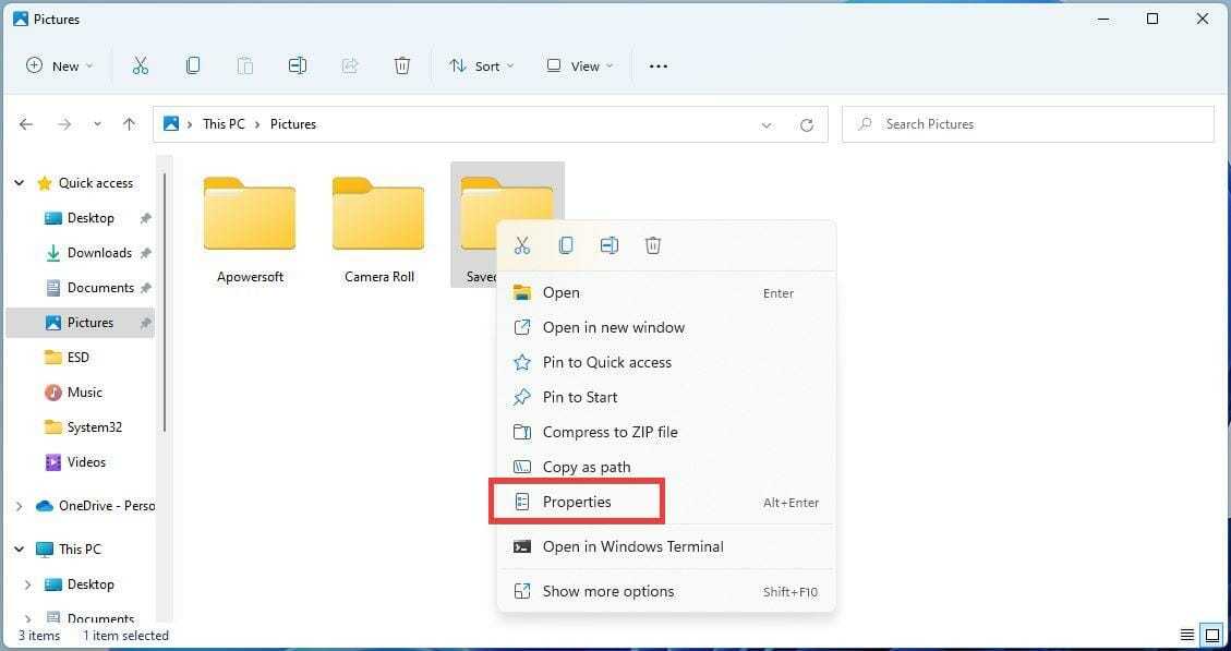 Щелкните папку правой кнопкой мыши и выберите « Свойства».