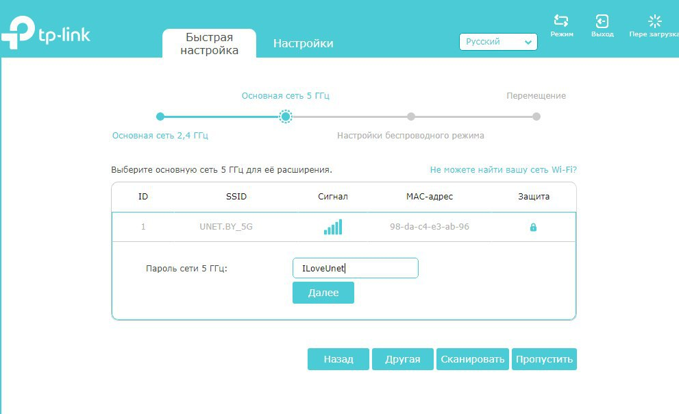 Теперь выберите сеть на 5 ГГц либо пропустите этот шаг, если у вас нет этой сети.