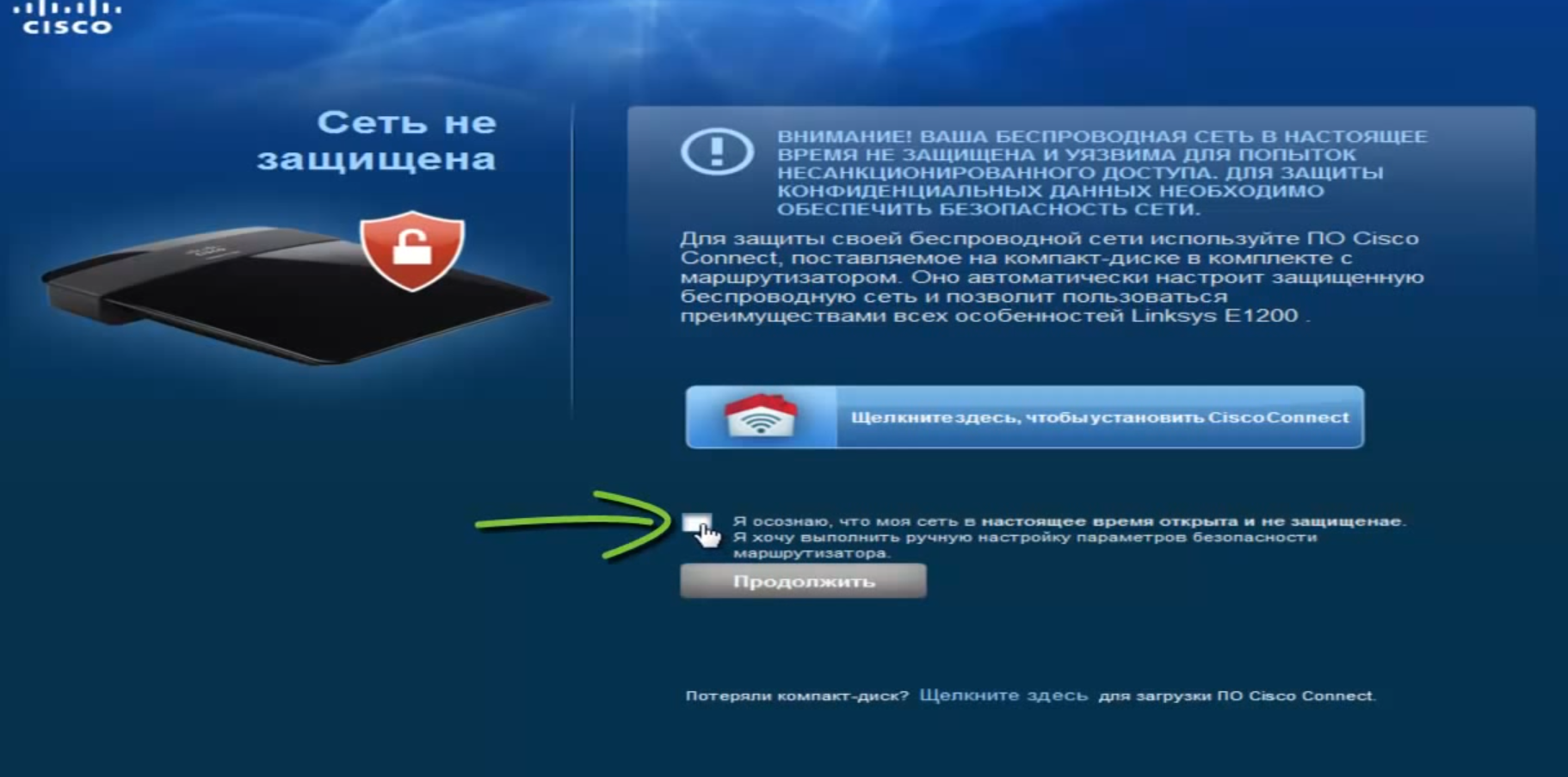 Дальше нам нужно согласится с тем, что мы осознаем, что беспроводная сеть пока не настроена и не защищена.