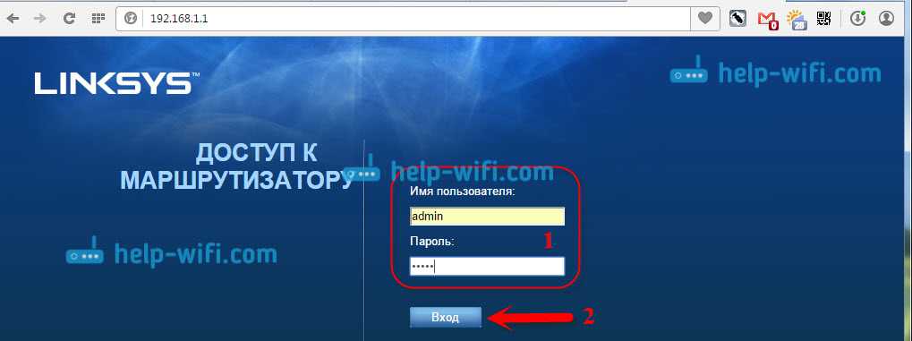 Вход в настройки на Linksys по адресу 192.168.1.1