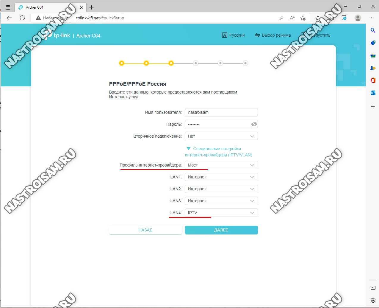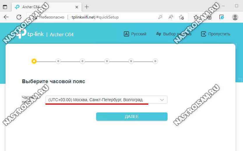 Далее будет запущен мастер быстрой настройки маршрутизатора. В случае с Archer C64 он действительно удобный и позволяет полностью настроить все базовые функции.