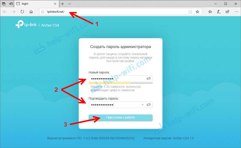 Должна открыться страница нашего роутера с предложением создать пароль администратора. Это значит, что мы все сделали правильно. Нужно придумать пароль и указать его два раза. Это не пароль от Wi-Fi! Это пароль, который будет защищать страницу с настройками роутера. Обязательно его где-то запишите. Если забудете, то не сможете зайти в настройки роутера и придется делать сброс настроек.