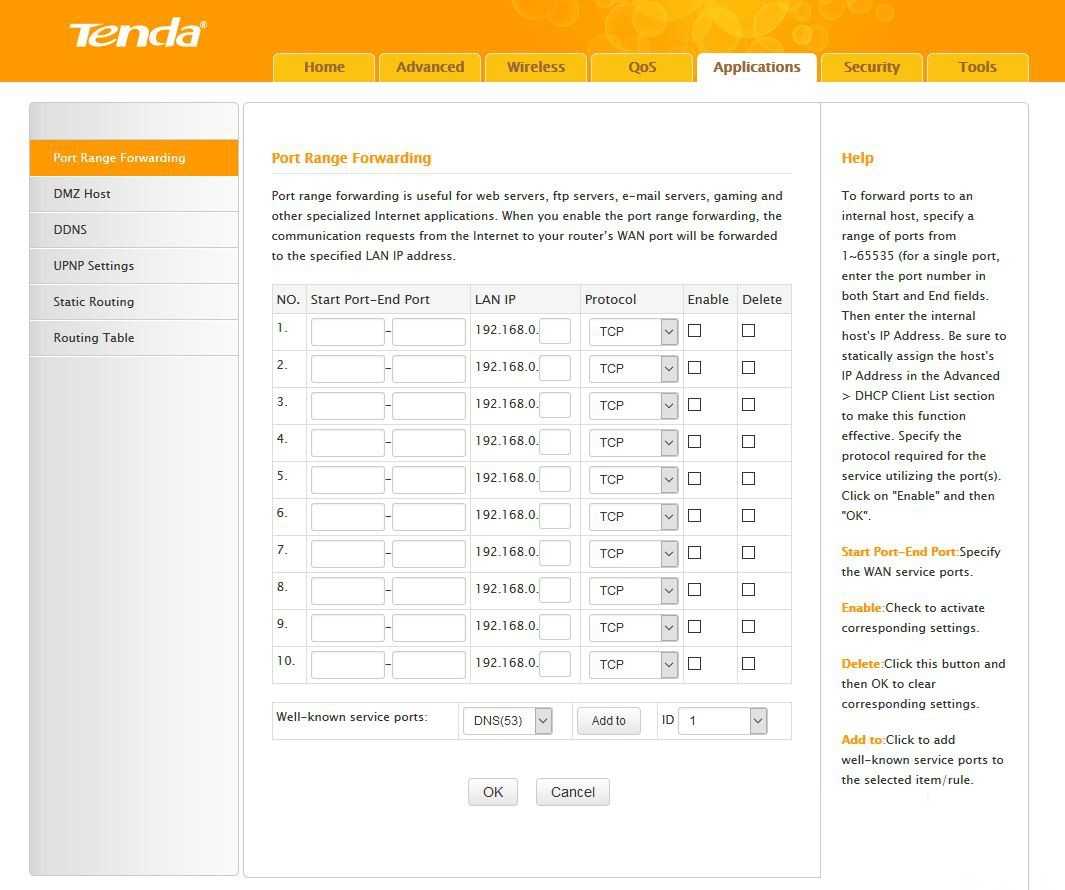 Инструментарий программного проброса портов на роутерах Tenda дружественен, и значительно упрощён.