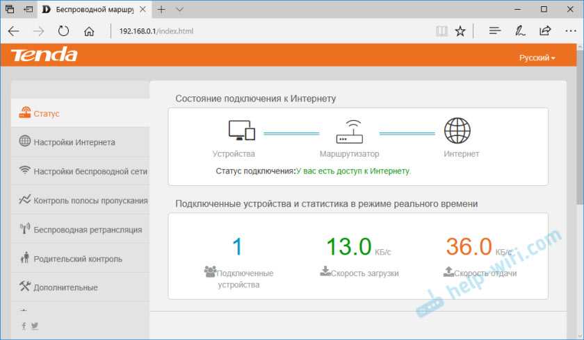После этого снова зайдите на 192.168.0.1. Если на главной странице вы увидите, что маршрутизатор подключен к интернету, то все хорошо. Роутер почти настроен.