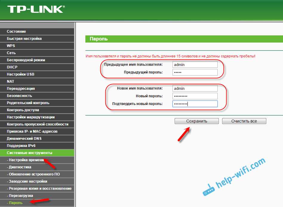 Указываем сначала действующее имя пользователя и пароль, а затем, придумываем новый пароль. Имя пользователя можете оставить admin.