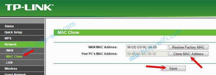 Многие роутеры позволяют клонировать МАС-адрес сетевой карты компьютера, с которого вы зашли в веб-интерфейс — если ранее в Интернет вы выходили именно с этого компьютера, то опция клонирования МАС-адреса может заметно ускорить его установку.